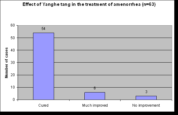 involving 63 women with amenorrhea, the use of Yanghe tang cured